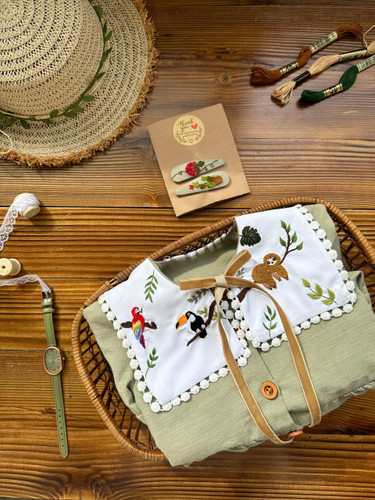 یقه جدا بب گلدوزی شده طرح جنگل مناسب 1تا12سال