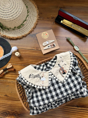 یقه جدا بب گلدوزی شده طرح ویالن وفرشته مناسب 1تا12سال