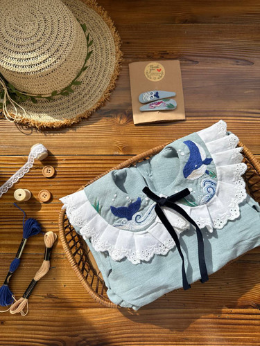 یقه جدا بب گلدوزی شده طرح نهنگ اقیانوس مناسب 1تا12سال