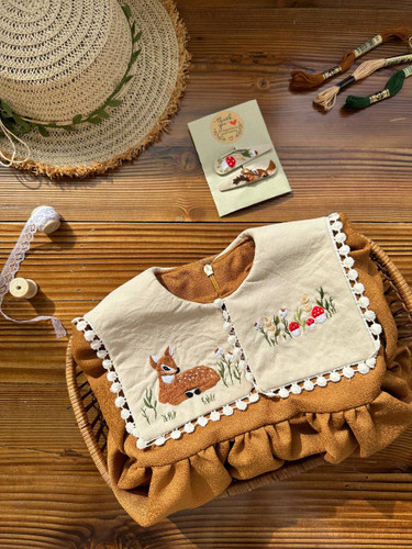یقه جدا بب گلدوزی شده طرح آهو مناسب 1تا12سال