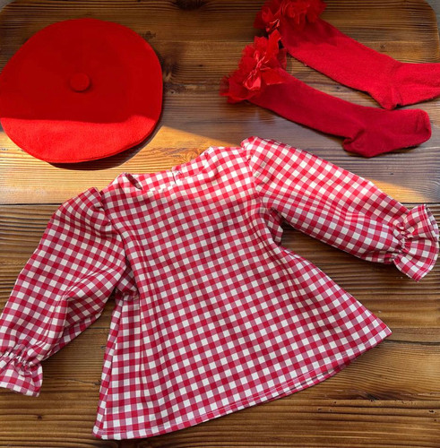 شومیز دخترانه چهارخونه قرمز مناسب 1تا12سال (طرح شنل قرمزی)