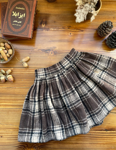 دامن دخترانه پشمی چهارخونه کلاسیک قهوه ای مناسب 1تا12سال