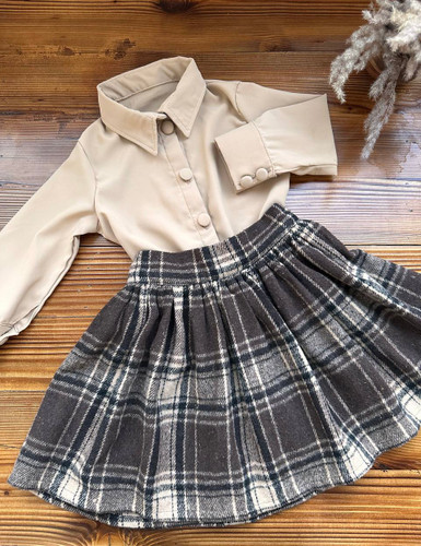 شومیز دخترانه کرمی یقه مردونه کلاسیک مناسب 1تا 12سال
