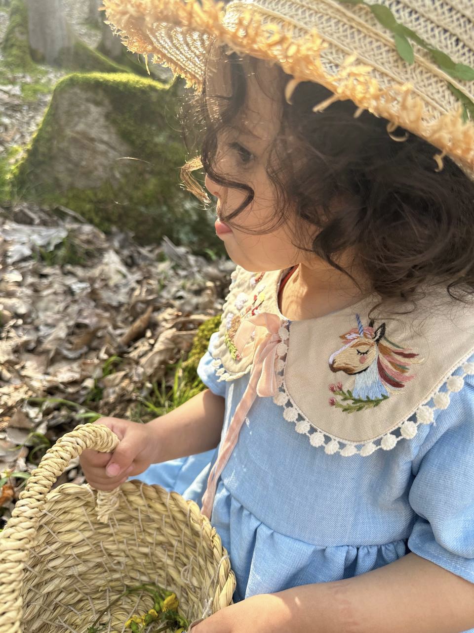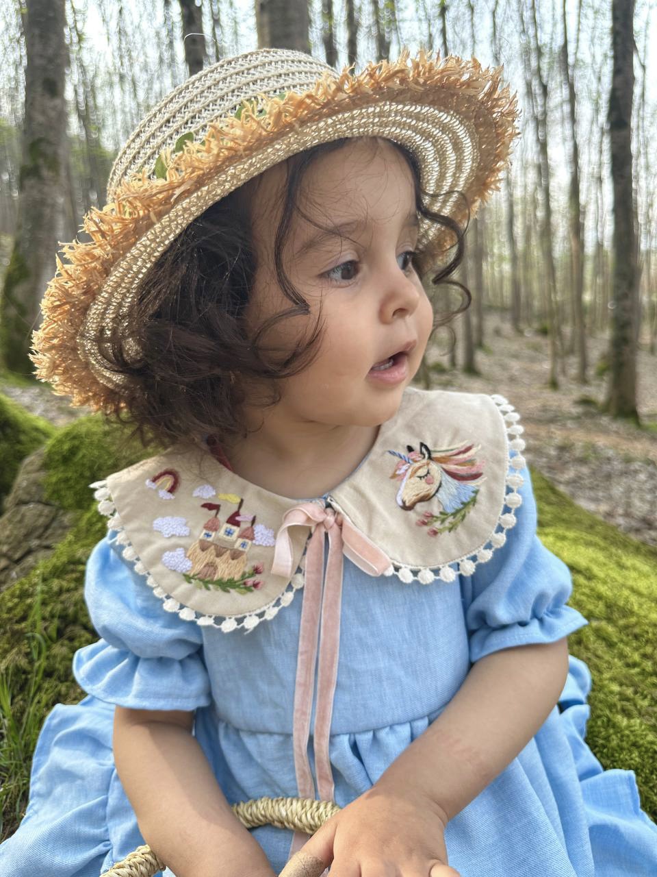 پیراهن دخترانه گلدوزی شده یقه بب طرح اسب تک شاخ مناسب 1تا12 سال(قصرخیال)