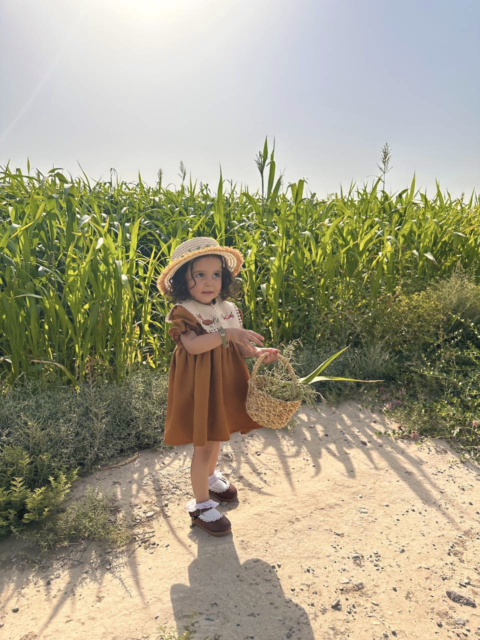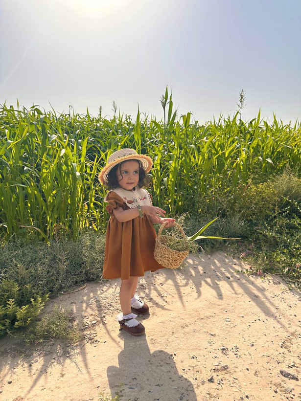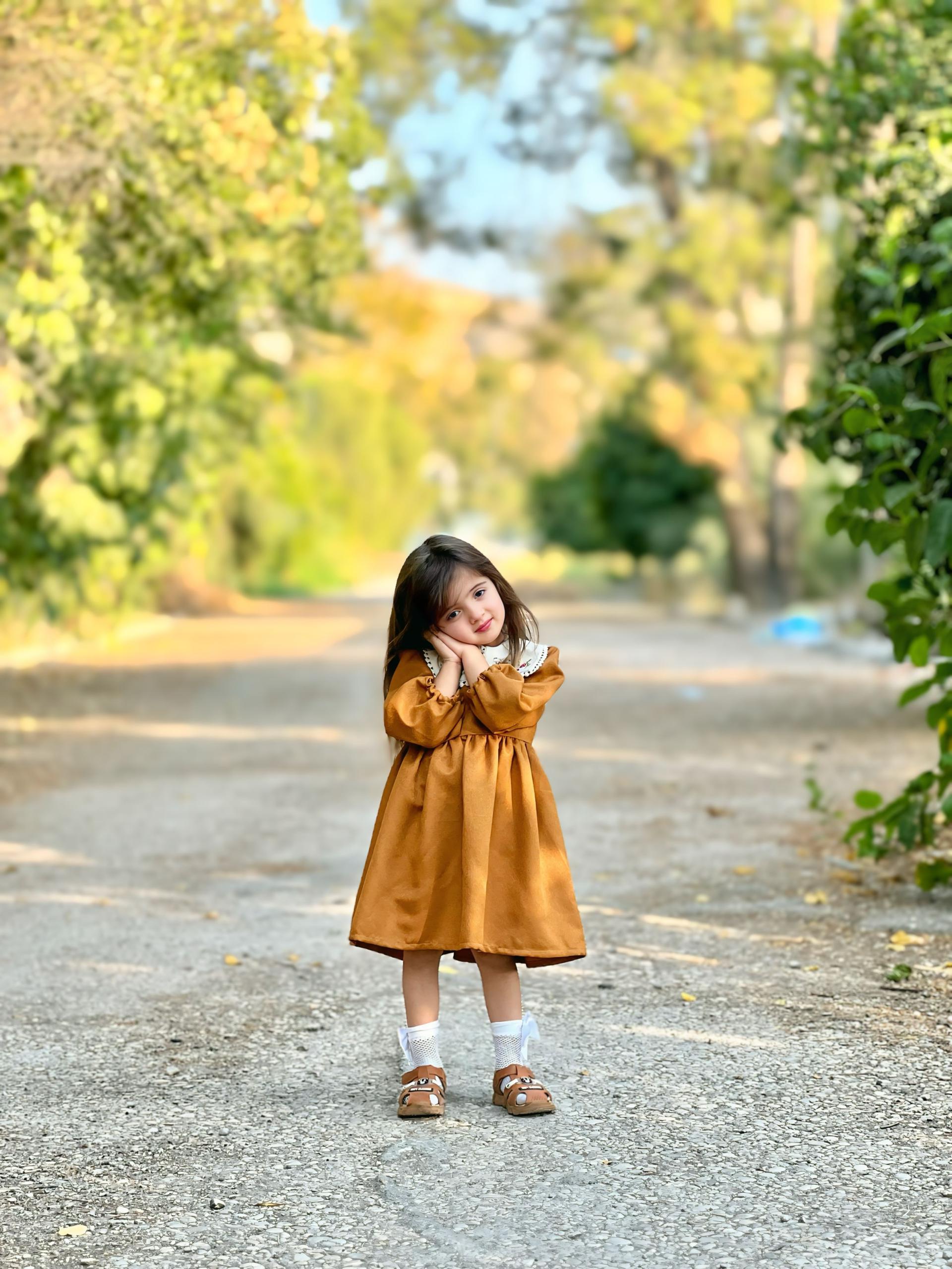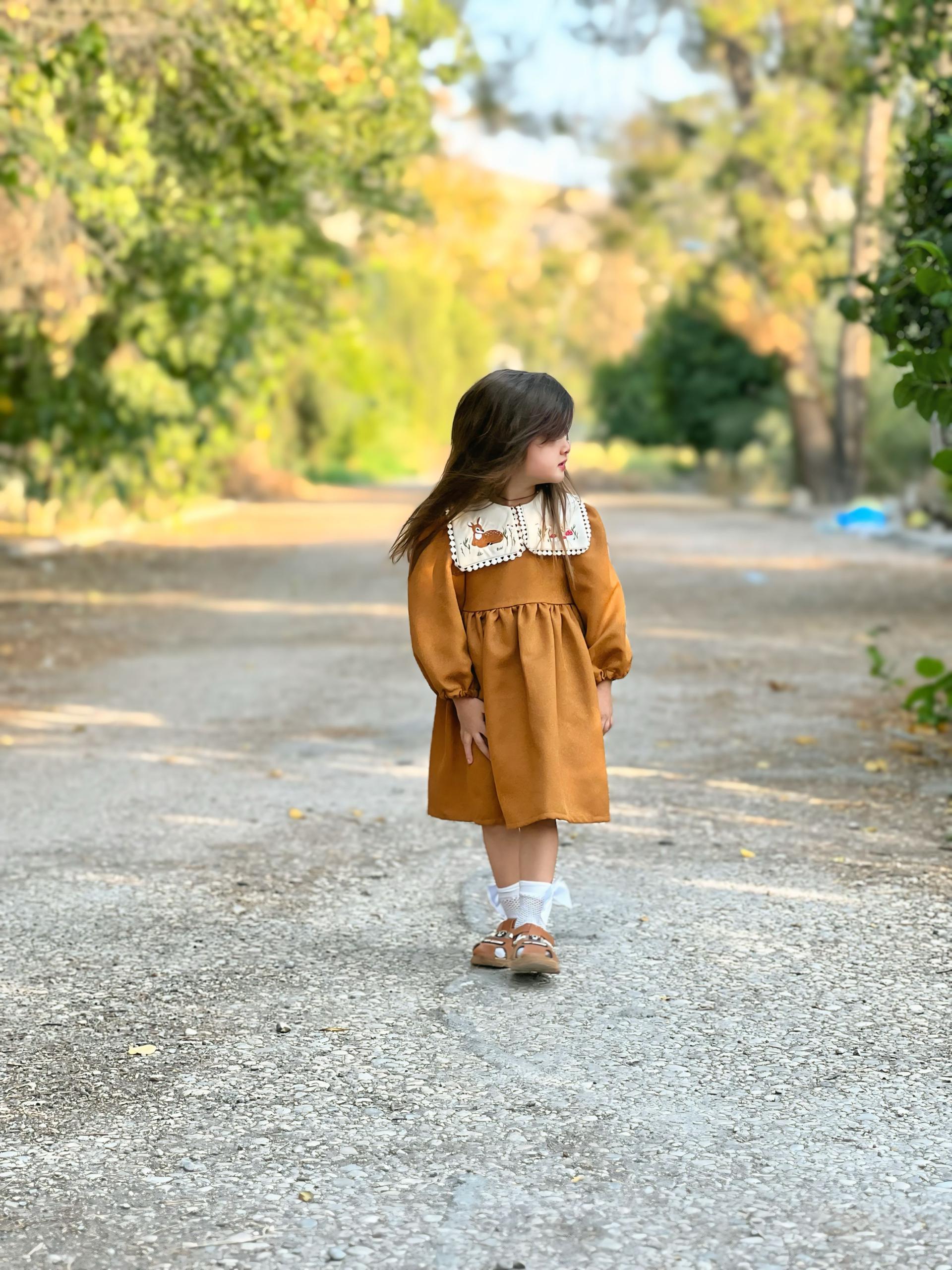 پیراهن دخترانه گلدوزی شده یقه بب طرح آهو خانم مناسب 1 تا 12سال