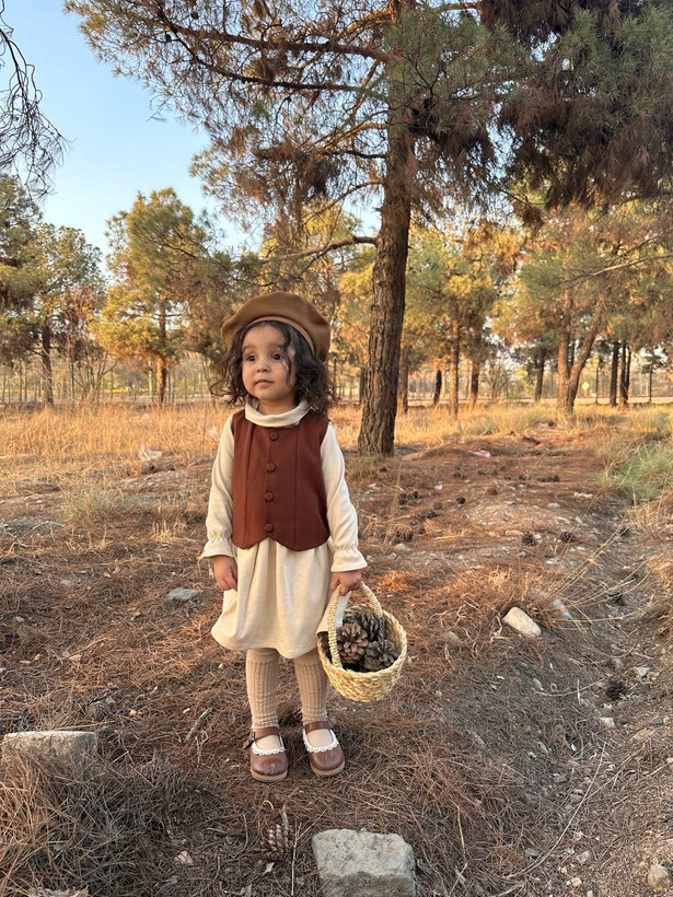 جلیقه دخترانه و بچگانه قهوه ای کلاسیک مناسب 1 تا 12سال
