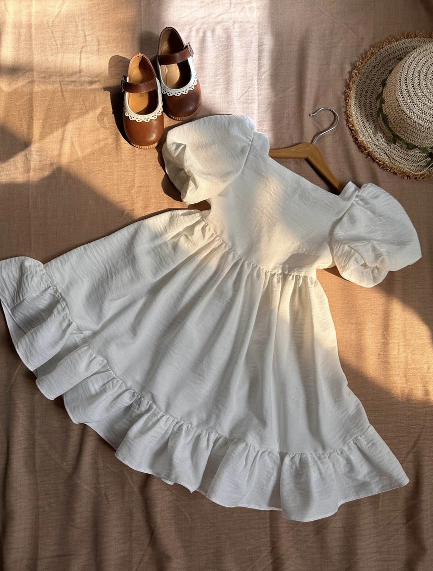 پیراهن دخترانه مینیمال پینترستی سفید آستین کوتاه مناسب 1تا 12سال (طرح سپید)