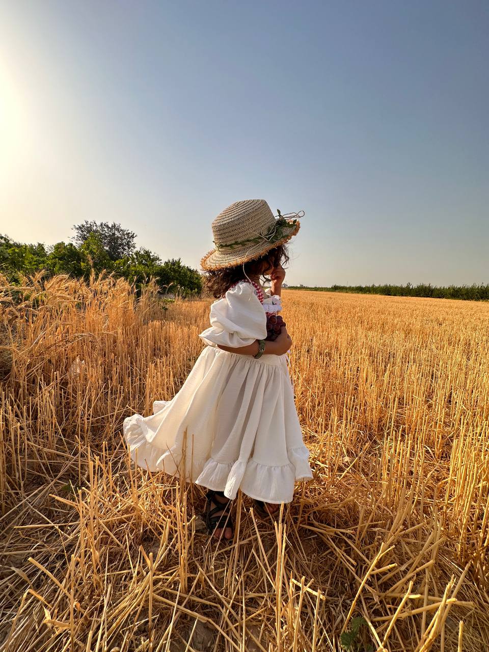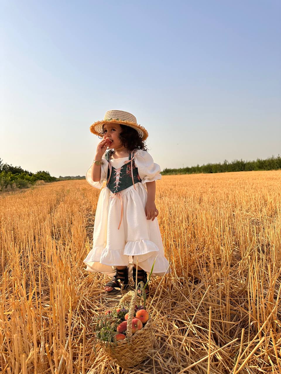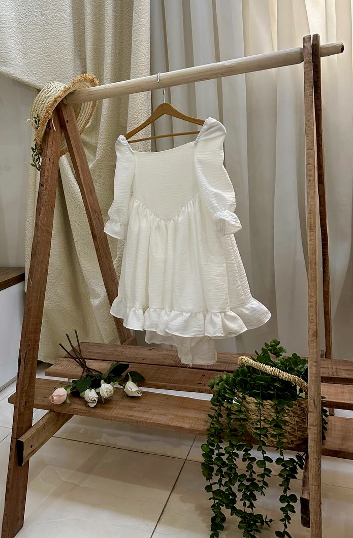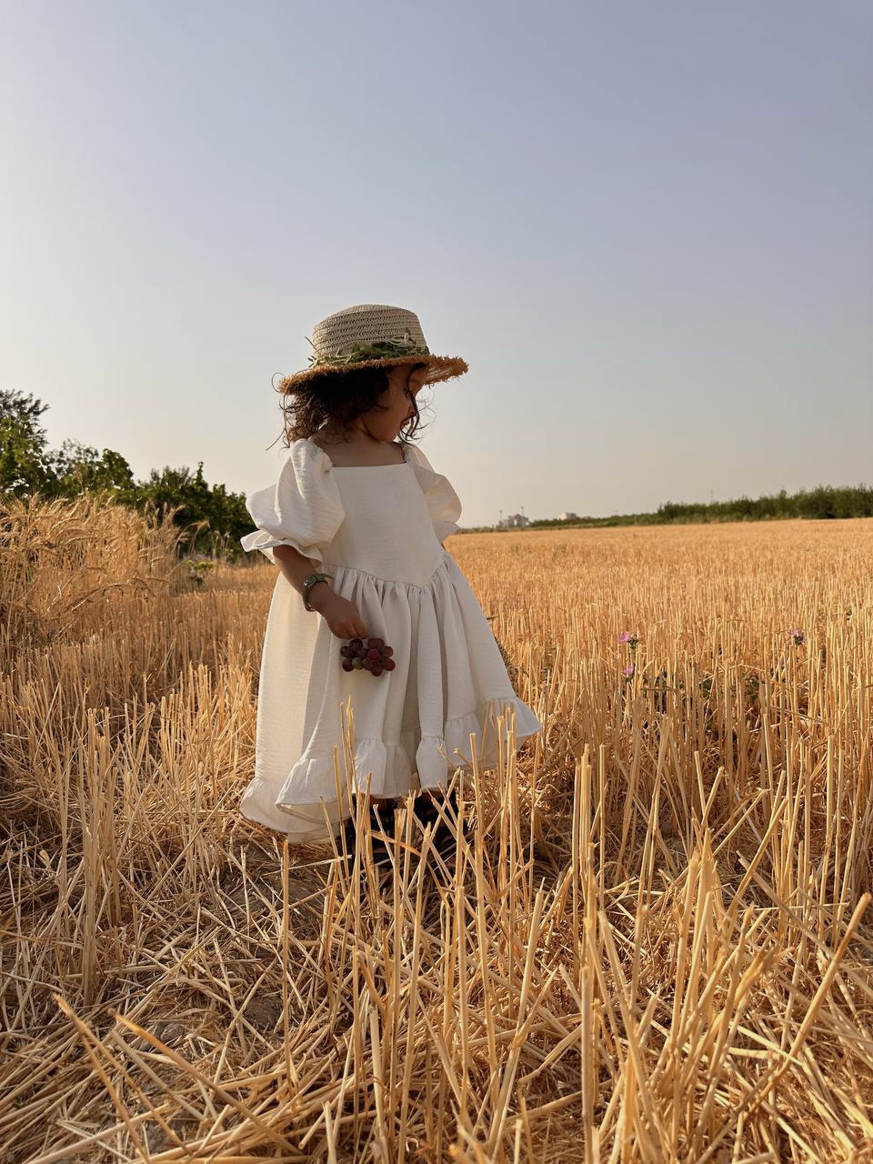 پیراهن دخترانه مینیمال پینترستی سفید مناسب 1 تا12سال(طرح دلبر)