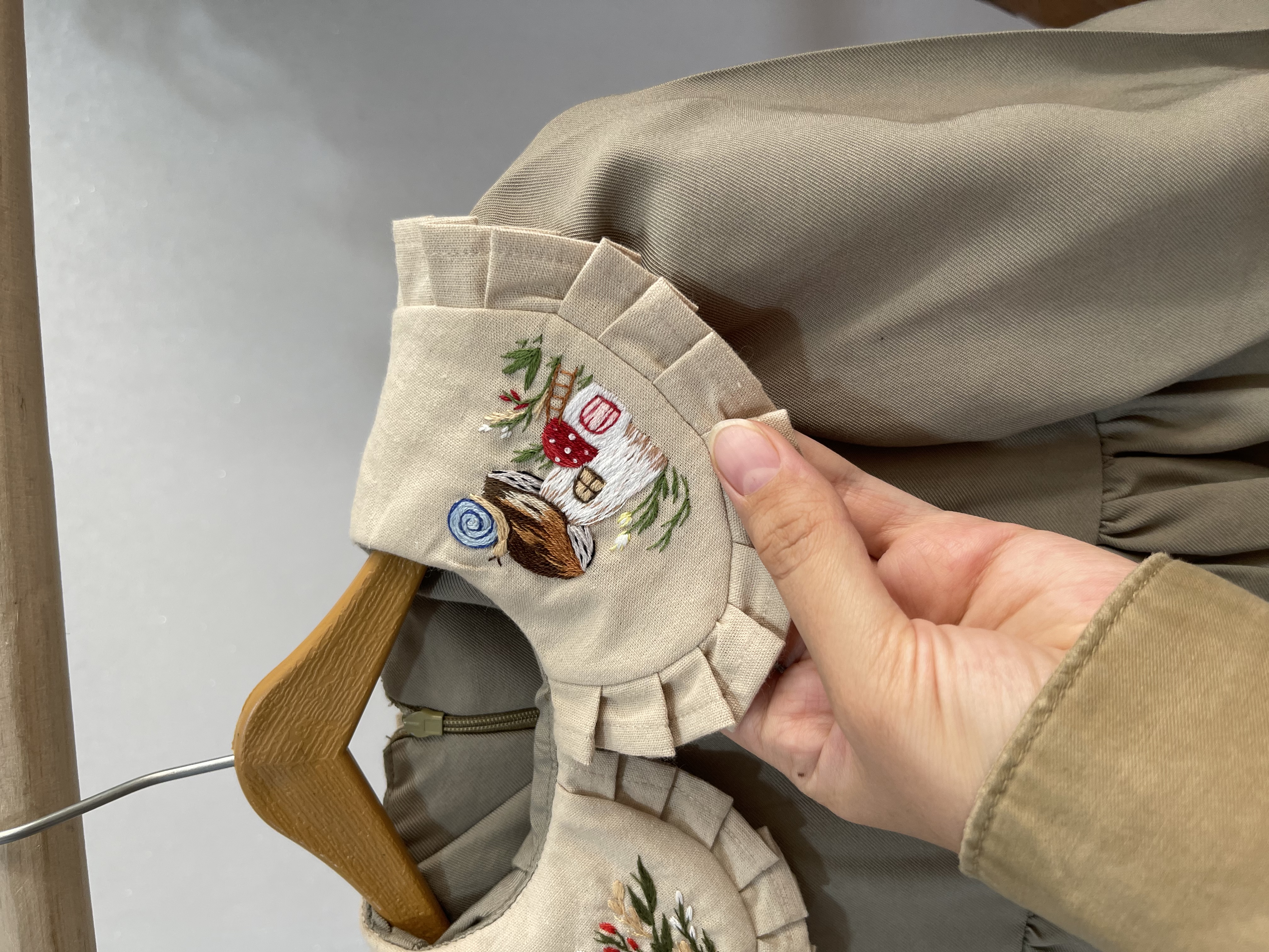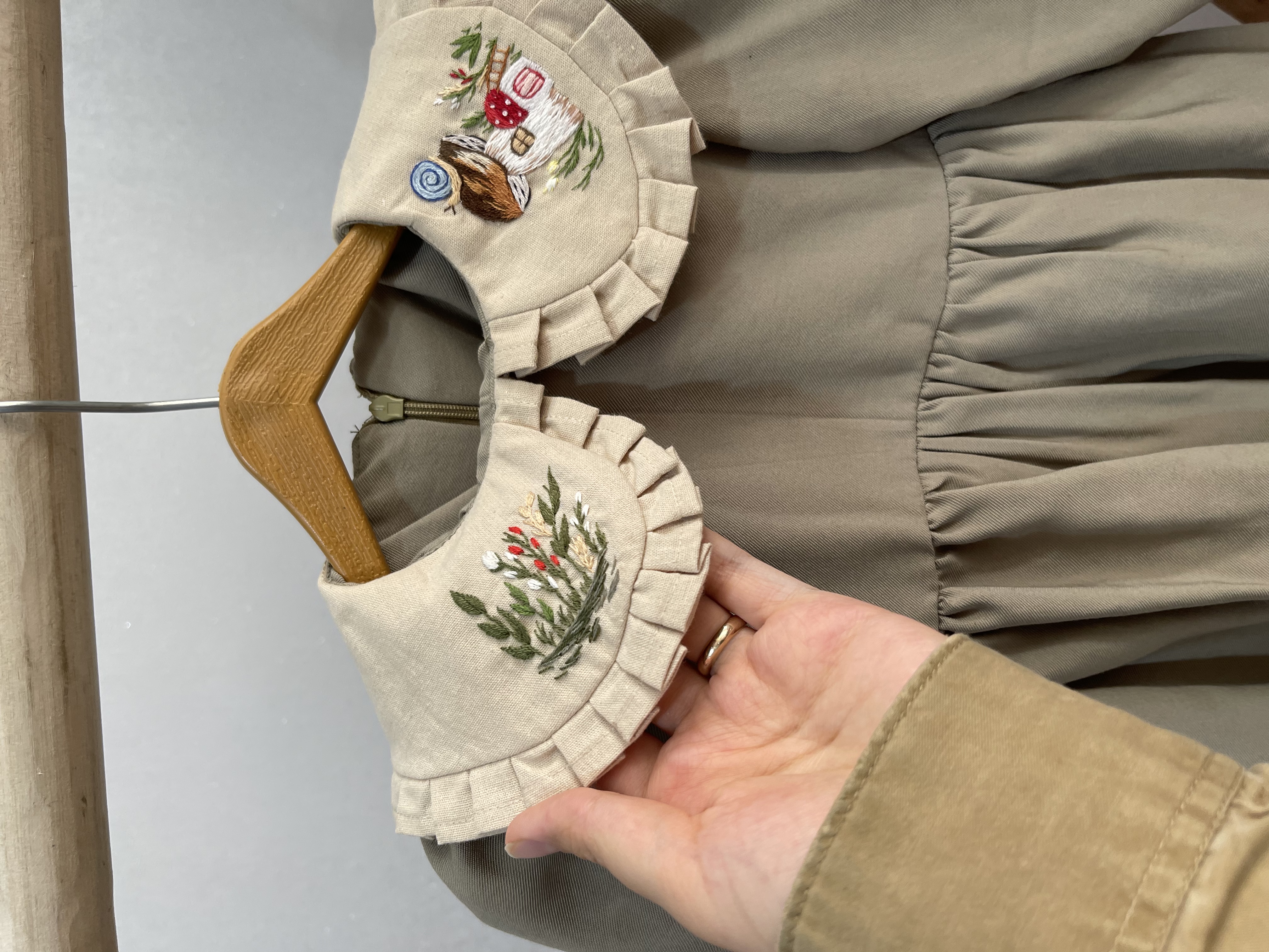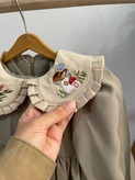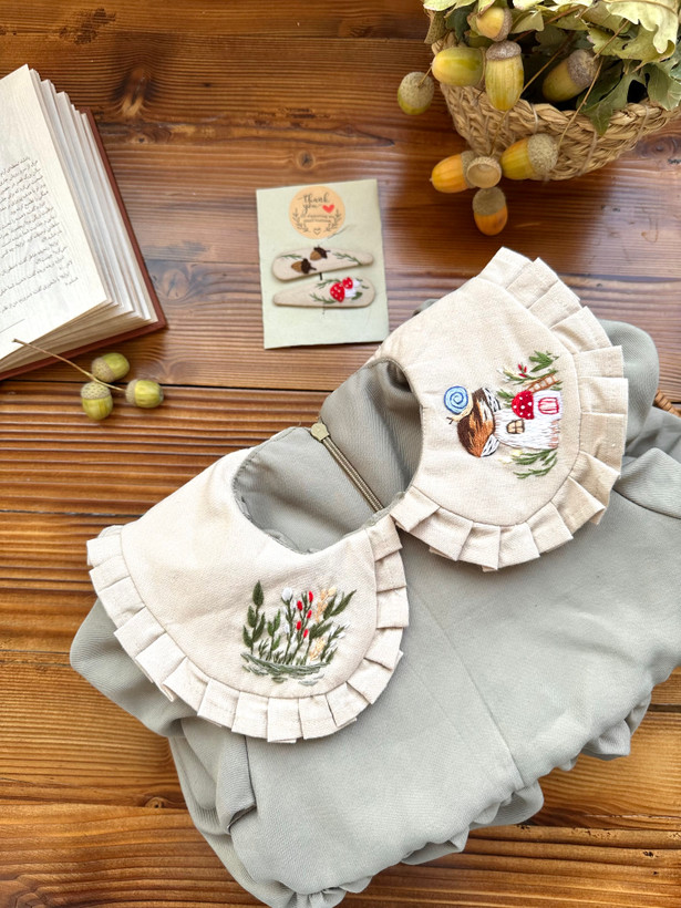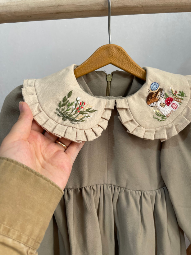 پیراهن دخترانه گلدوزی شده یقه بب طرح کلبه ی قارچ مناسب 1تا12سال