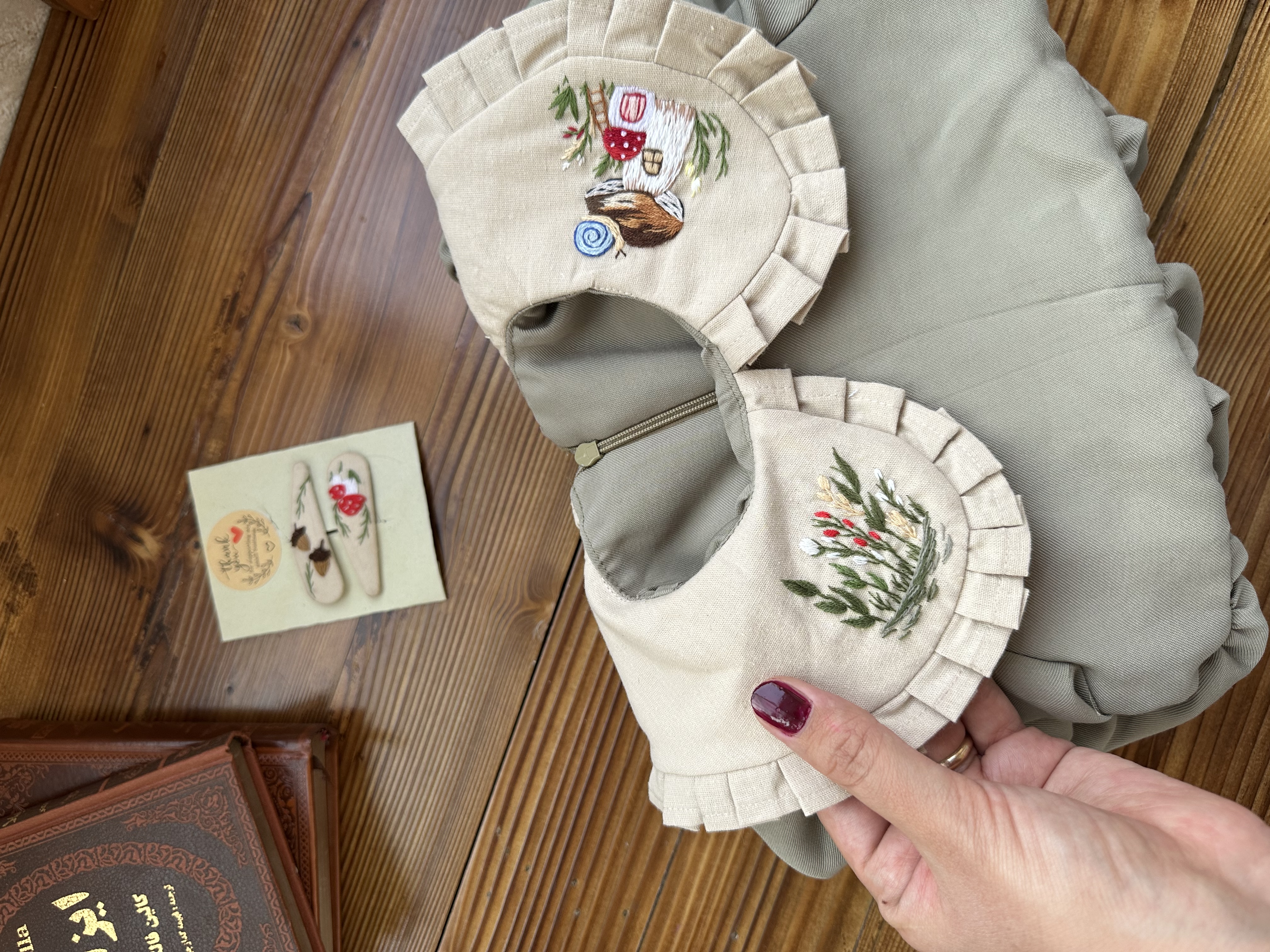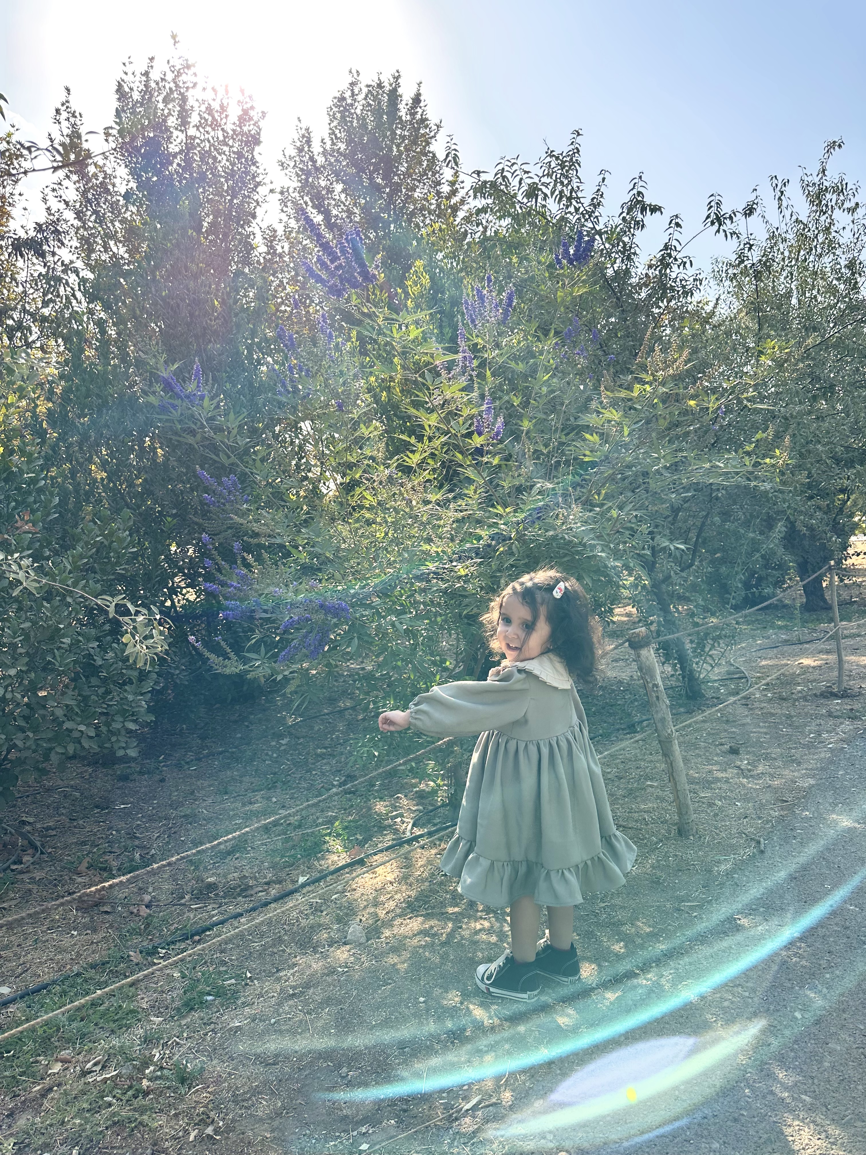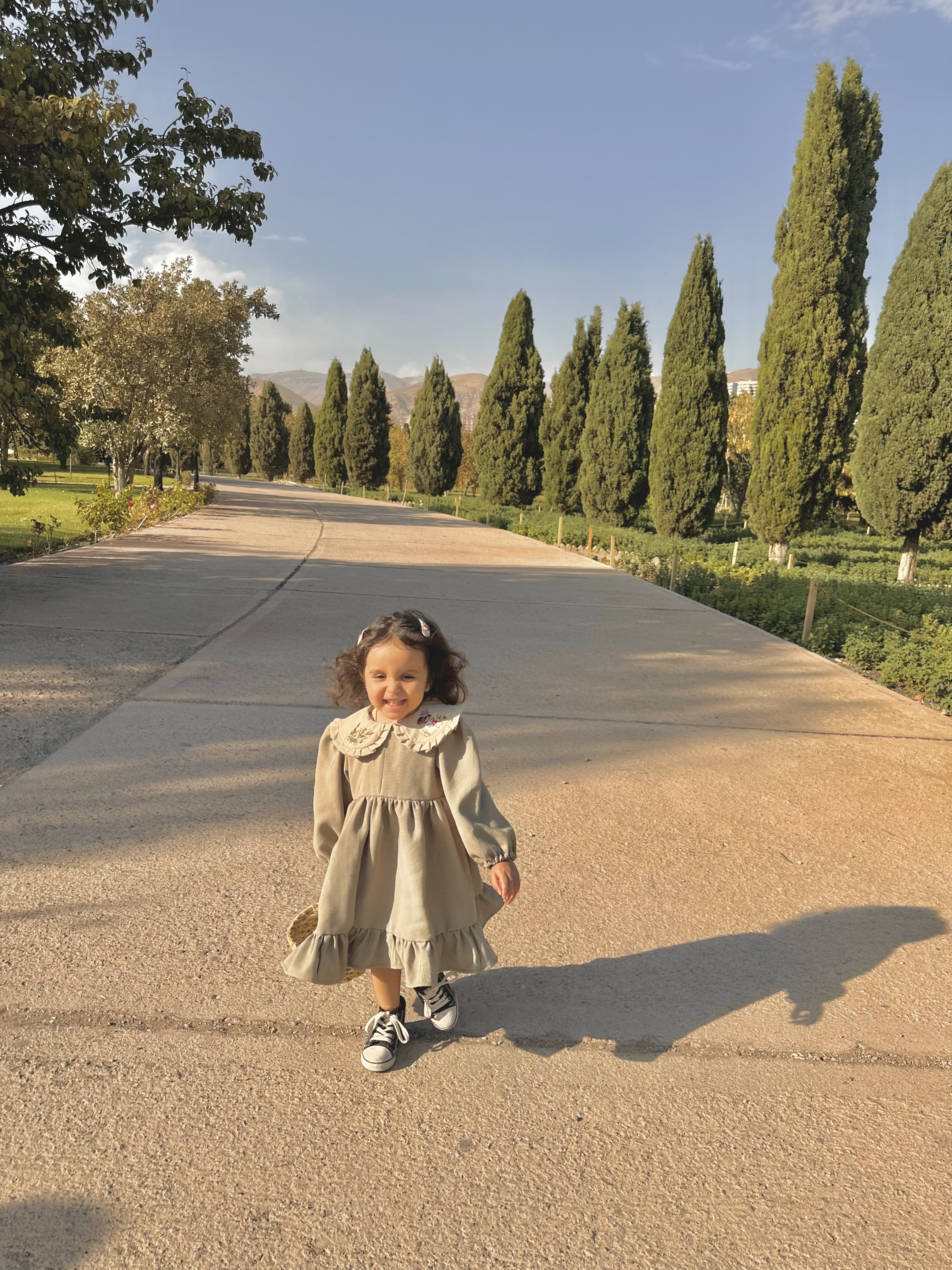 پیراهن دخترانه گلدوزی شده یقه بب طرح کلبه ی قارچ مناسب 1تا12سال
