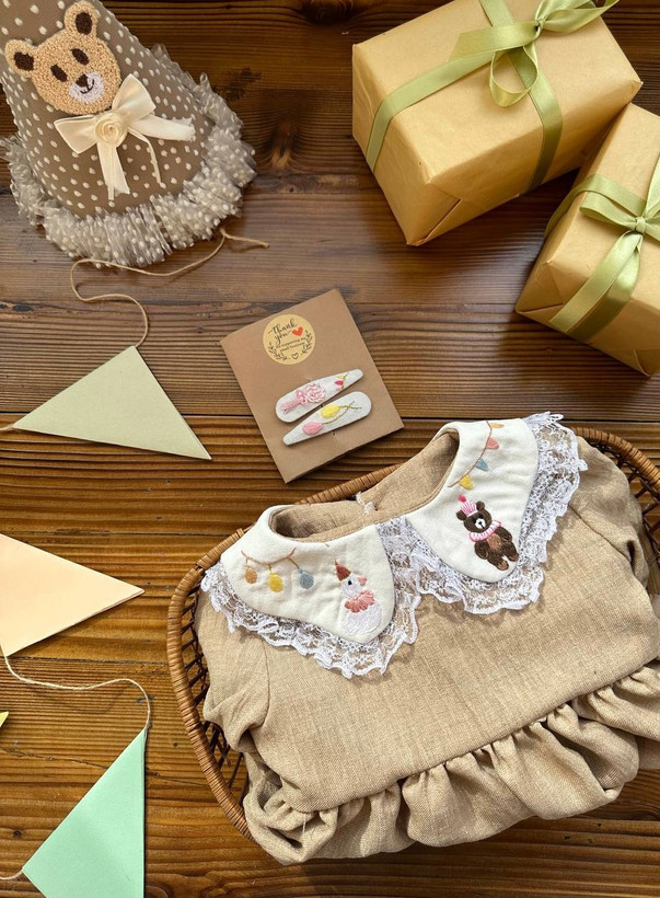 یقه جدا بب گلدوزی شده طرح تم تولد مناسب 1تا12سال